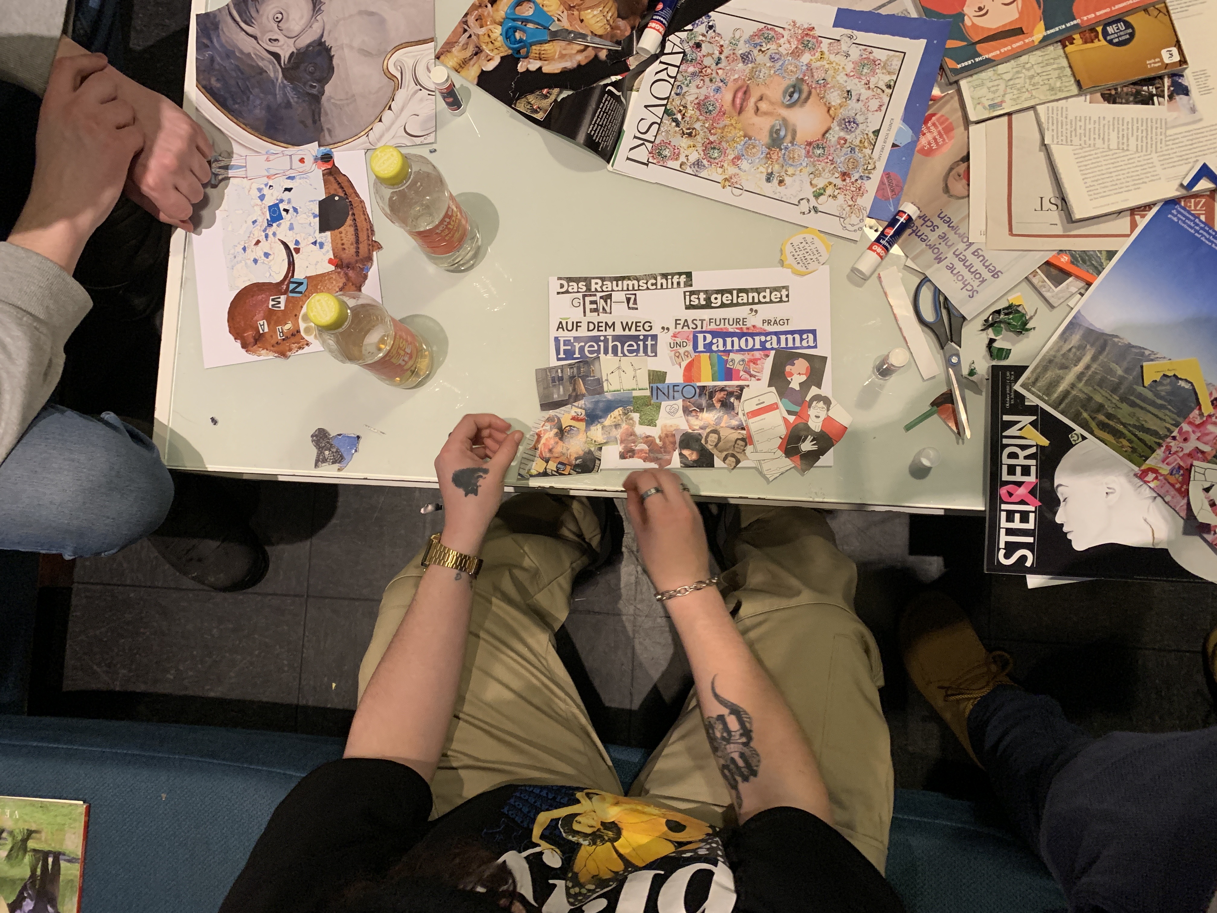 Wie ist der Workshop aufgeteilt. In einem einführenden Teil werden bestimmte europäische Themen aufgearbeitet. Welche das sind, liegt bei den Jugendlichen. Mit dieser Vorarbeit machen wir uns in einem zweiten Teil mit den Jugendlichen Gedanken, welche Europa-Botschaft sie an andere Menschen weitergeben wollen. Die Ideen und Botschaften werden mit Collagen künstlerisch und kreativ umgesetzt. Die Botschaften der Jugendlichen bleiben somit nicht nur im Klassenzimmer, sondern können mit Postkarten weiterverbreitet werden.