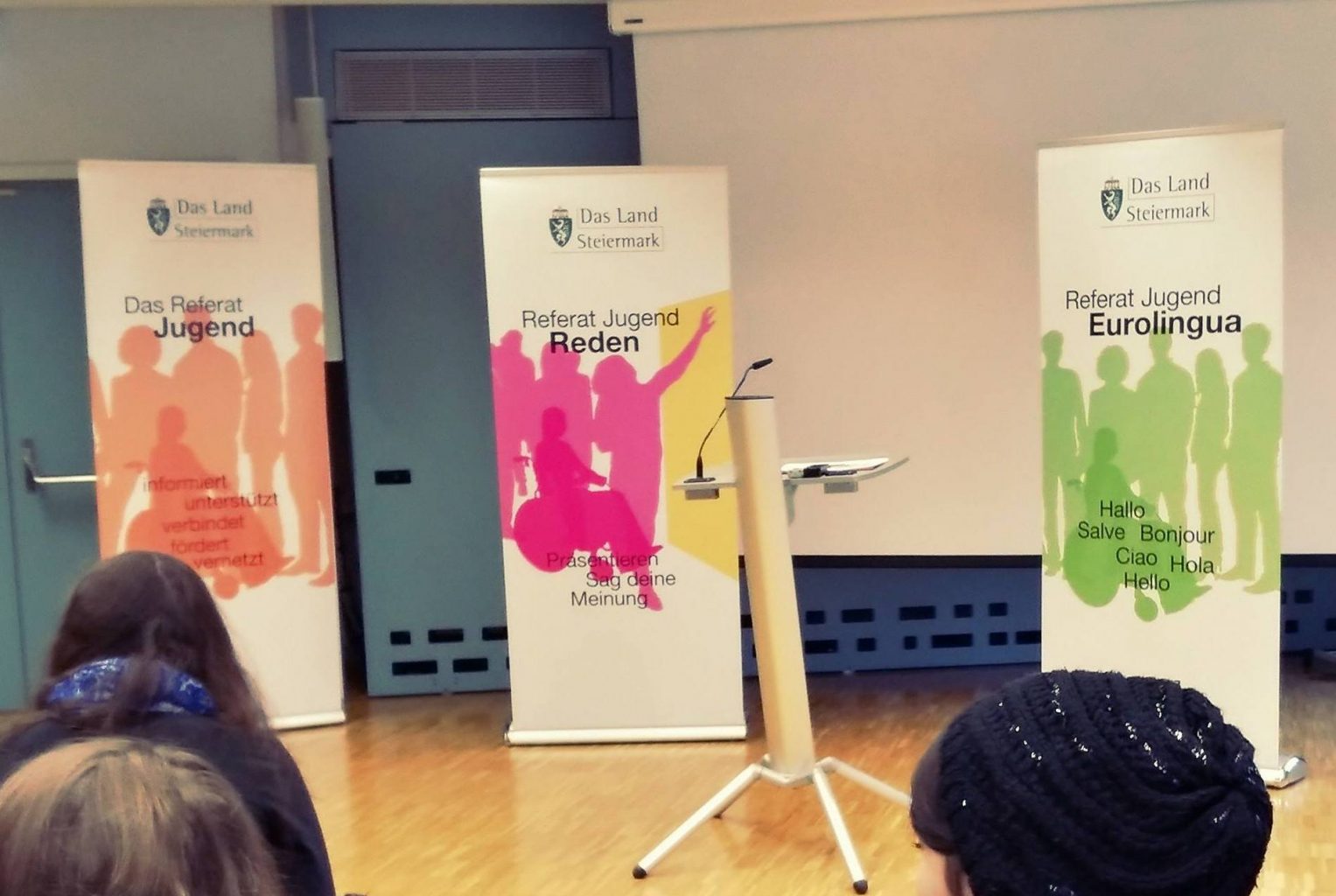 Was ist der Redewettbewerb „for all“? Schülerinnen und Schüler ab der 8. Schulstufe mit einer anderen Erstsprache (dabei war u.a. Rumänisch, Serbisch, Polnisch, Bosnisch und Persisch) als Deutsch wurden vom Referat Jugend des Landes Steiermark eingeladen, an diesem Wettbewerb teilzunehmen. Die Teilnehmerinnen und Teilnehmer sprechen über ein freies Thema ihrer Wahl in ihrer Erstsprache.