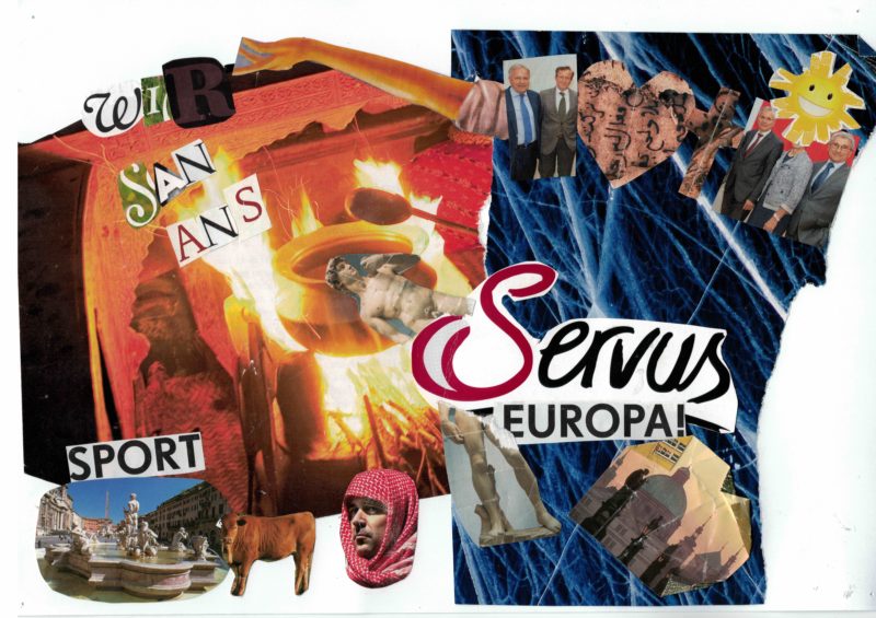 Im Zuge eines Workshops sind die SchülerInnen gemeinsam mit den KünstlerInnen Kinga Toth und Ales Steger der Frage nachgegangen, was Europäische Identität ist, wie sie klingt und wie sie in uns wirkt. Die Jugendlichen bedienten, sich dabei künstlerischer Elemente und versuchten im Prozess Darstellungsformen aus. Zusätzlich wurden in einem Collagen-Workshop Europa-Postkarten entwickelt. Die Postkarten als ein Medium, das Grenzen überwindet und gleichzeitig Gedanken verbreitet, ist eine Metapher, die vor allem der (grenzenlo(o)sen) Europäischen Identität entspricht. Die Ergebnisse des Workshops und der Prozess wurden bei einer Erlebnispräsentation in einem ruhigen und familiären Rahmen sicht- und hörbar gemacht.