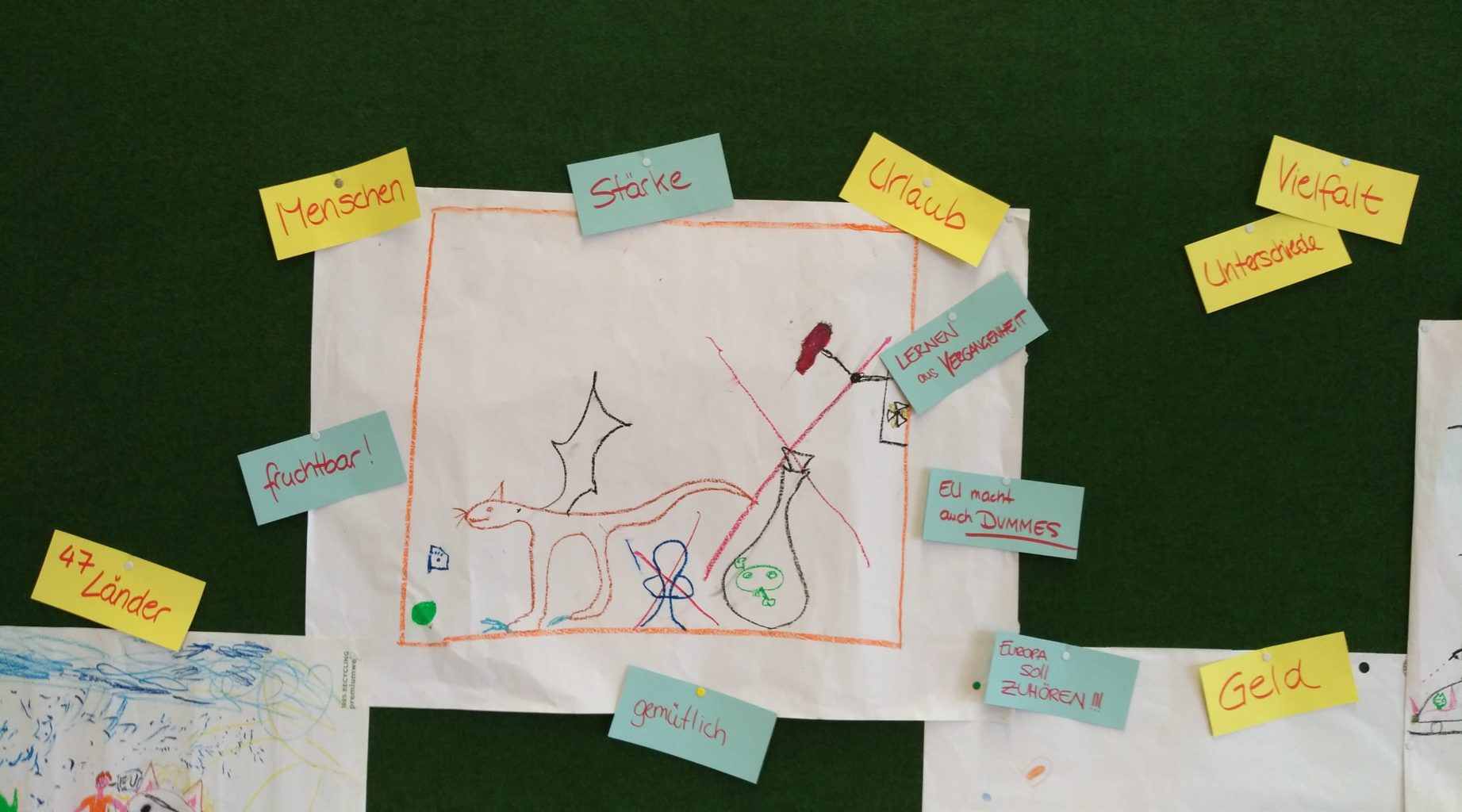 Dass das aber kein Hinderniss ist, sondern vielmehr eine Bereicherung haben wir in der Auseinandersetzung mit Europa erfahren. Denn hinter den ganzen Institutionen der Europäischen Union haben wir das gesucht, was alles verbindet. Wie sich herausgestellt hat, war das bei allen SchülerInnen das Gleiche. Was alle verbindet ist nämlich der Wunsch nach einem friedlichen Zusammenleben aller Menschen in Europa, ob alt oder jung, klein oder groß, österreichisch oder europäisch.