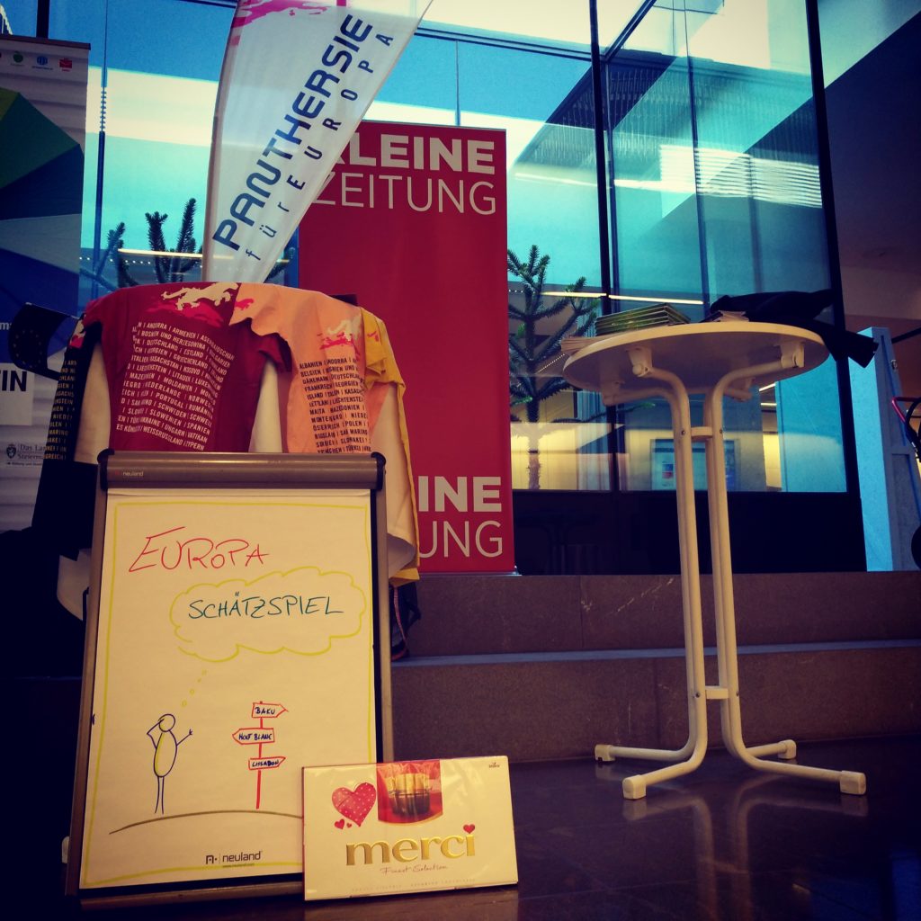 Die Panthersie für Europa hat da mitgemacht und interessierte beim Europa-Schätzspiel gefordert. Neben dem Hirnschmalz, dass für Fragen wie „Wie hoch ist der Mont Blanc?“ oder „Wie viele Amtssprachen werden in der Europäischen Union gesprochen?“ gebraucht wurde, wurde nebenbei eifrig über Europa diskutiert. Neben der Panthersie konnte Europe Direct Steiermark und Logo.Jungendinfo, genauso für Europa begeistern.